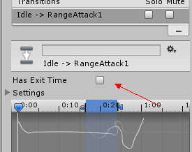 但是現在過渡條件是空的(de),所以我們要自己創建一個過渡條件,回(huí)到左麵的Parameters選項中,我們給他添加一個Triggerr(觸發)條件(jiàn),然後在Conditions中設置。現在Attack是一次性的動作,不會重複(fù),所以(yǐ)這個動作(zuò)播放完就會停止,所以我們要讓(ràng)Attackk回(huí)到Idle狀態。連回去。我們會發(fā)現當點擊Trigger後,並不會馬上從Idle狀態跳轉到Atrrack狀態,這是因為我們默認勾選了Has Exit Time